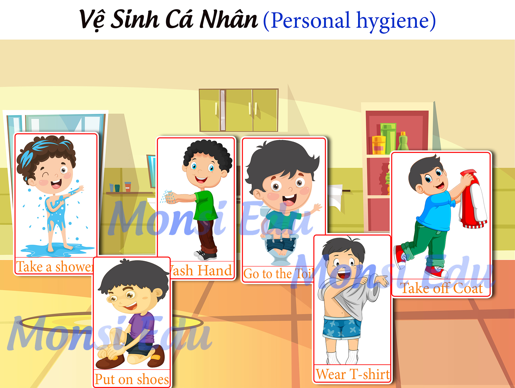 Gồm 10 chủ đề, các chủ đề xoay quanh hành động cuộc sống xung quanh Bé:  Chuỗi hành động vào buổi sáng hay buổi tối, hành vi – thói quen khi vệ sinh, hoạt động vui chơi ở công viên, … Các chủ đề được trình bày nhiều dạng: Ghép cặp, Sơ đồ tư duy, Bóng nền, Theo thứ tự quy trình, …